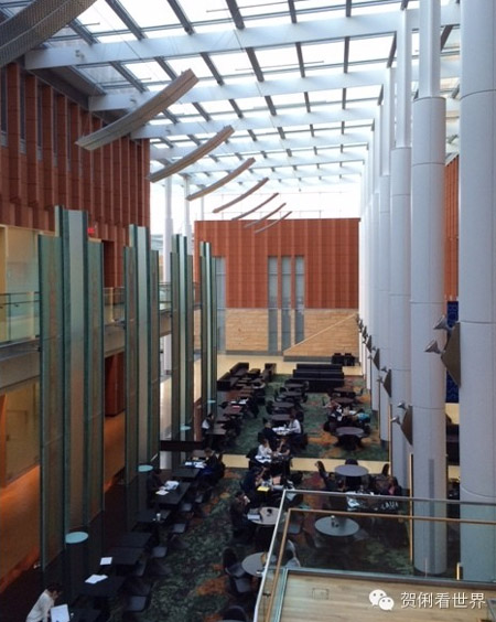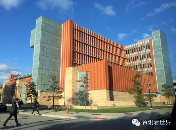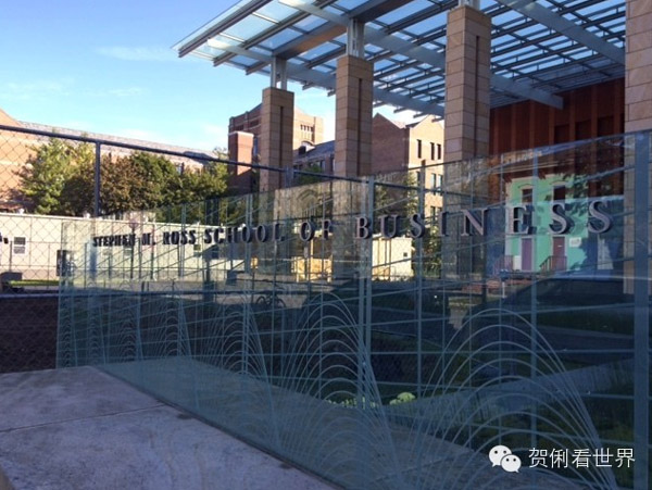 朋友在密歇根的商学院念书,我也得以参观了这个以斯蒂芬-罗斯(Stephen Ross)的人命名的“罗斯商学院(Ross School of Business)”。橘红色的外墙镶嵌在透明的玻璃隔层里看起来格外鲜艳,教学楼里无比阔气的陈列着各种艺术收藏品,室内的设计也是毫无保留的显示着捐赠人的设计品位。罗斯先生1962年毕业于罗斯商学院,后来从事房地产开发以及投资,2004年他的一笔1亿美金捐赠使得密歇根大学以他的名字命名了商学院,而这座崭新而又闪耀的大楼也因此而落成,我猜想,从事房地产开发的他应该也对这座大楼的设计注入了他的观念,不然为什么我会觉得这栋楼美的这么专业呢?2013年,罗斯先生再次捐赠1亿美金,商学院也因此得以重建图书馆,这对于在此求学的学生来说,是何等的幸运。