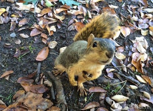 不知道是谁把这个松鼠喂得这么肥,而且一点也不怕生人