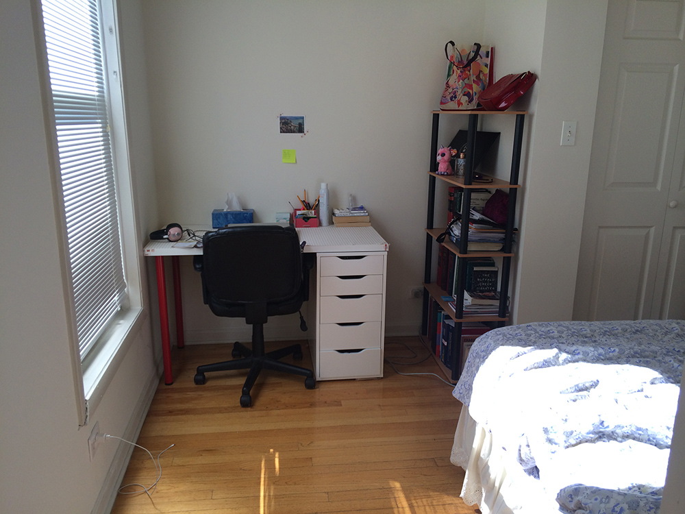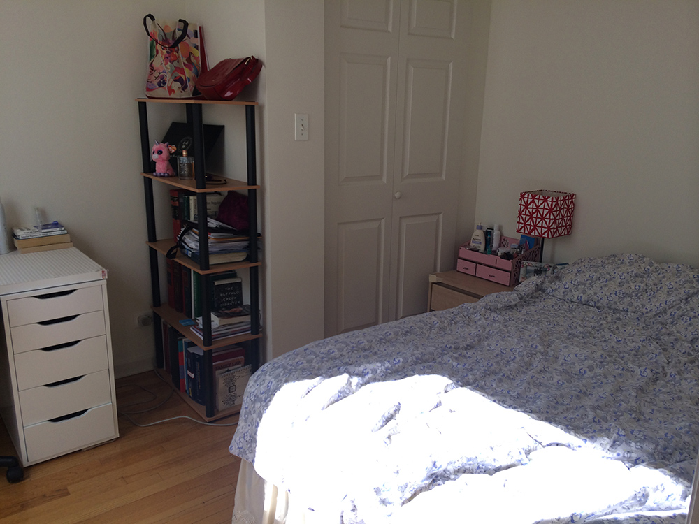 房子位于第三层,采光、通光条件都很好,并有中央冷暖器。共两间卧室,现在的室友是一名女生,在IIT读研究生,需要找一位安静、爱干净的女生室友。现available的是两间卧室中比较大的一间,房租为
