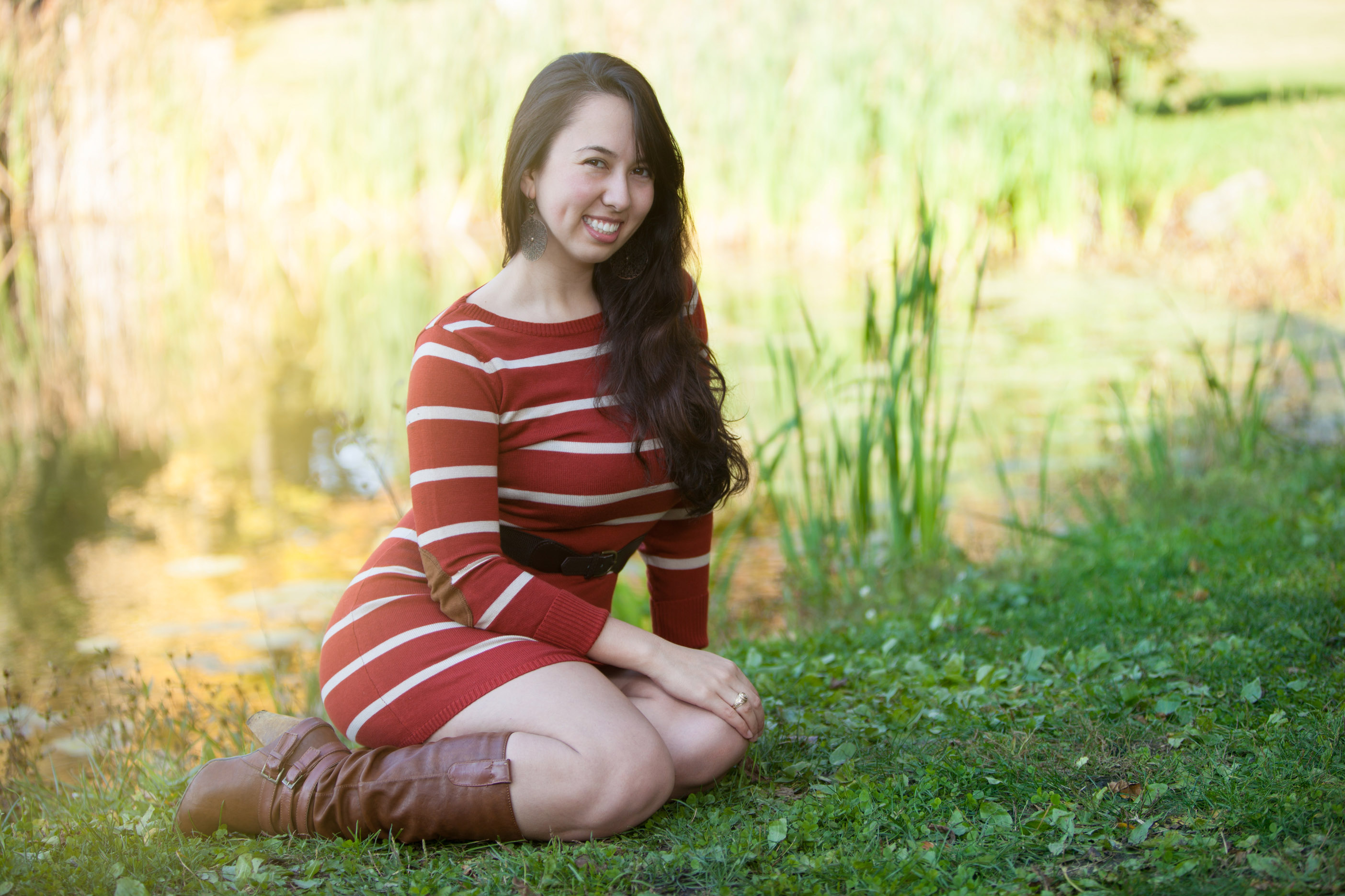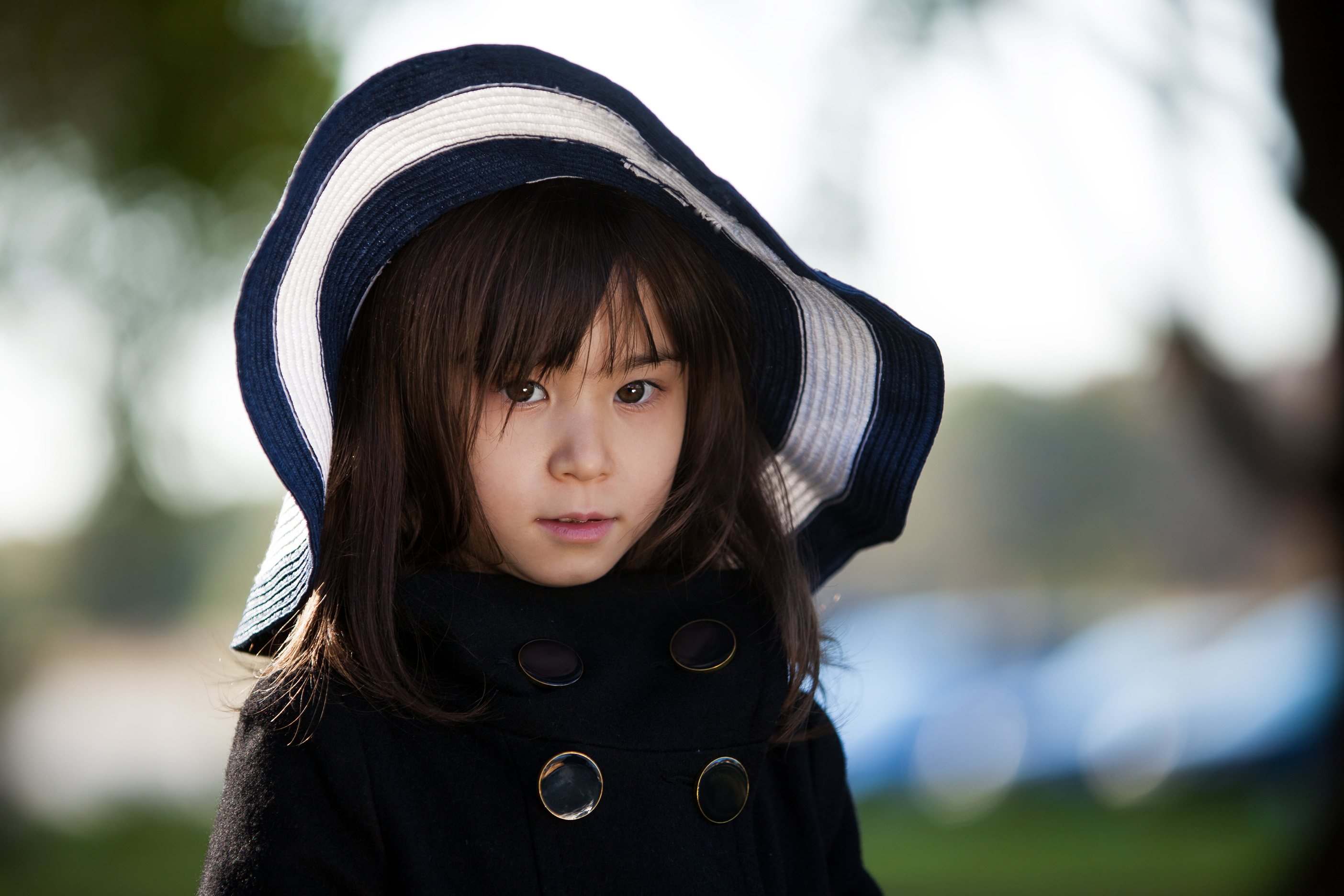 The first photo looks great! It expresses internal tranquility of a young girl. The second one seems to be over-exposed a bit but the composition is nice.