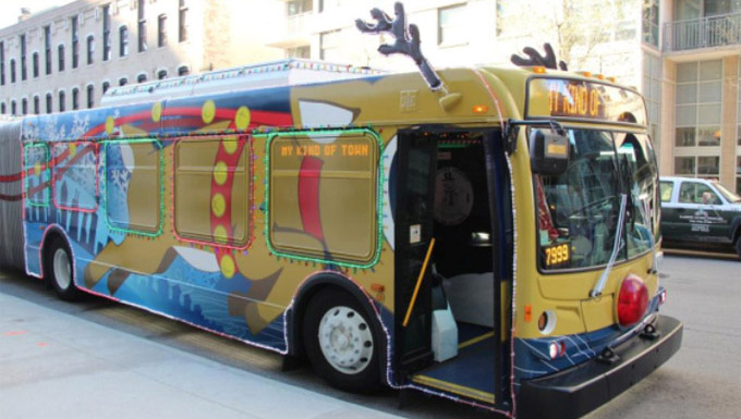 CTA 节日巴士装饰得有如圣诞老人的雪橇,车头会顶着一个亮闪闪地红鼻子,车身上挂满了彩灯。如果幸运地话,可以乘坐到由马哈利亚•杰克逊小学 (Mahalia Jackson Elementary School) 的学生装饰得特别版节日专线公交车。车内的所有座椅将会换成红配绿的圣诞节专版,还会有糖果手杖、玩具士兵和圣诞树立在车内。乘客们还将有机会和圣诞老人一起合照并且领取免费的糖果棒。