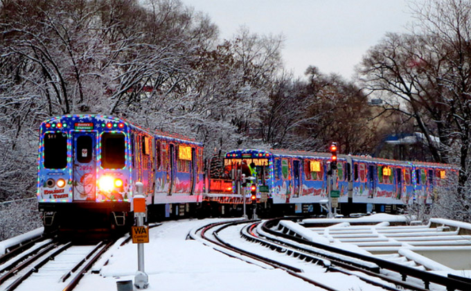 一年一度的CTA地铁节日列车,则已上周五开通。地铁节日列车是芝加哥庆祝圣诞节的传统项目,今年已经是第23个年头,乘客们将有机会在不同地铁线路的不同时间,乘坐装饰成各式各样充满圣诞节气氛的节日列车。