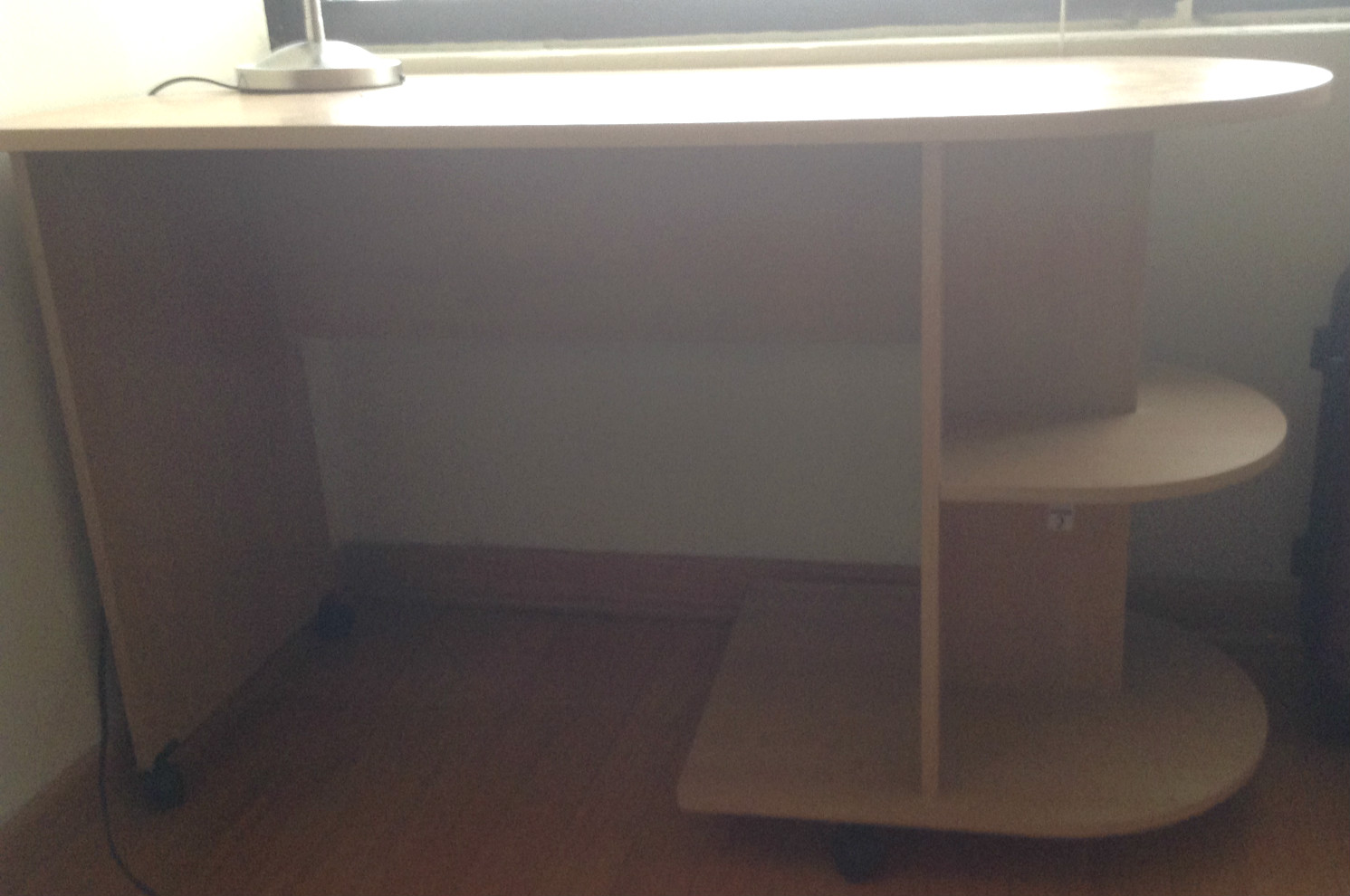 4. 二手木书桌(底下有轮子,方便搬运,还有书架,一举两得): 18刀  ---已售