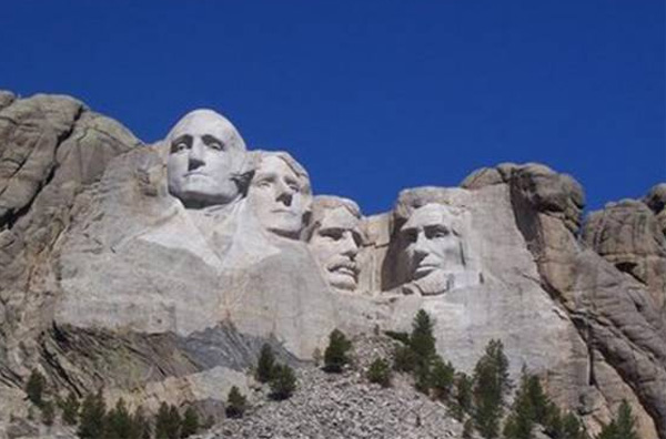 在美國南達科他州西部,有座雕著美國國父華盛頓、獨立宣言起草人杰弗遜、 和平使者老羅斯福、黑人之父林肯等四位偉大總統巨大頭像的拉什莫爾山(Mount Rushmore),巨大的花崗岩石雕刻,栩栩如生,讓您嘆為觀止。
