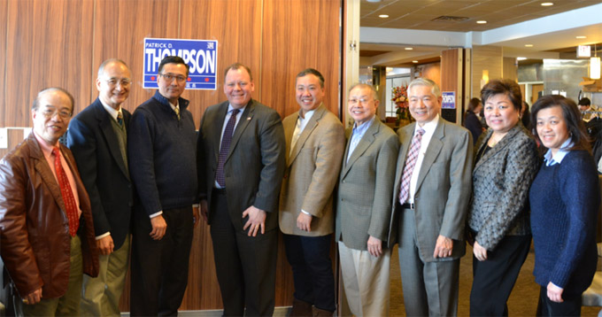 芝加哥华人工商界人士支持Patrick D. Thompson (左四)竞选11区区长