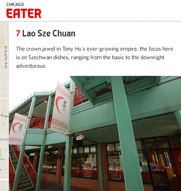 芝加哥经典权威美食杂志Chicago Eater从成千上万家各类餐厅中精选出38家必去餐厅,老四川荣幸上榜,并且名列第七,成为唯一上榜中餐厅!