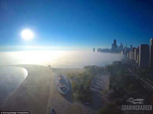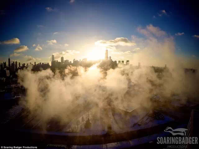 一个在白雪覆盖下,在薄雾弥漫中,在冰天雪地里美不胜收的芝加哥。
