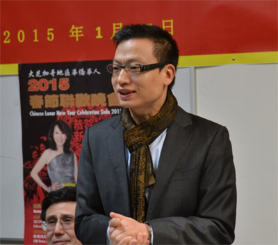 华联会主席汪兴无,理事长胡晓军,总干事王涛,当天分别发言,一致呼吁大芝加哥地区侨团组织、社区商家、侨学各界朋友大力支持本届晚会,踊跃购票,积极赞助,大家共同努力,为芝加哥地区的侨胞带来一场高水准的新春晚会。