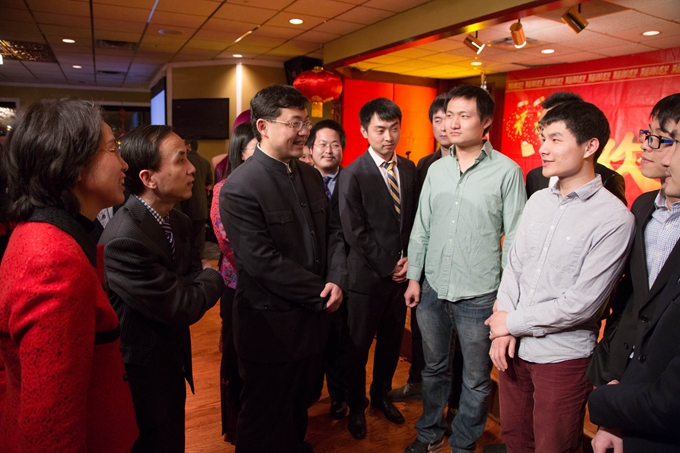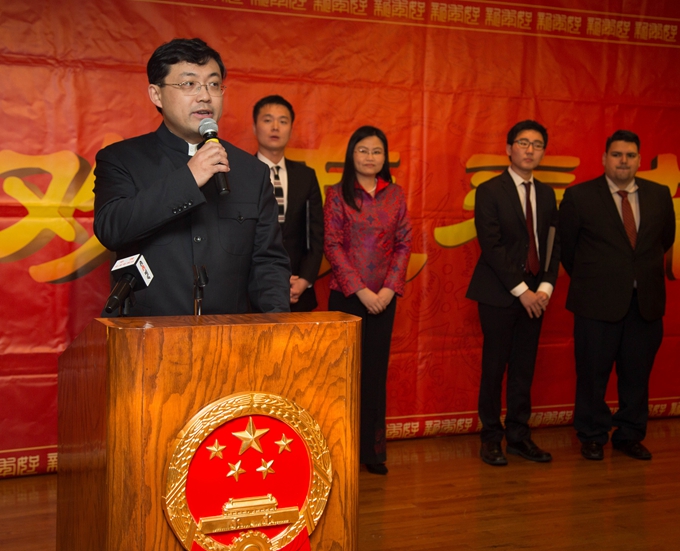 中国驻芝加哥总领事馆代总领事王永,2月6日在芝加哥中国城富丽华酒楼隆重举行新春招待会。来自芝加哥及美中地区的各界侨领、各高校留学生代表、中资企业代表近500人欢聚一堂,共同迎接羊年新春的即将到来。代总领事王永发表新春致辞,回顾2014年中国国家建设、中美关系的成就与进展,展望2015羊年新春的期待与机遇。