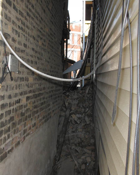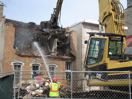 3月19日中午時分,在芝加哥市政府的許可下,唐人街一棟長期廢棄的住房(224 W. 23rd St.)被拆除推倒。屋主是一位華裔老太太,她站在一旁,扶着小推車,心情悲傷、聲音哽咽,看着巨型挖掘機一點一點將自己的房屋拆除推倒。