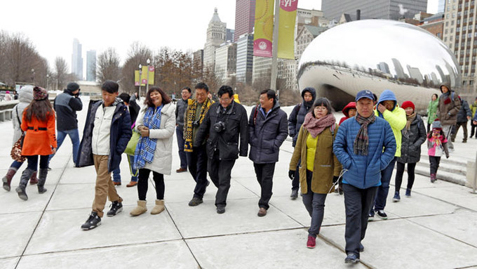 2015年2月,首届“到芝加哥过大年”的中国游客,在市中心千禧公园参观