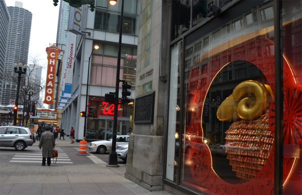 2015年2月,芝加哥市政府推出第二届“全城庆祝中国年”活动,图为位于市中心的羊年新春橱窗