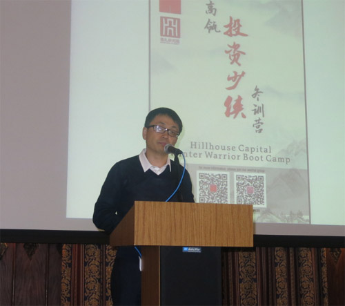 在当天的演讲中,张磊还向与会者介绍了“高瓴投资少侠冬训营”(Hillhouse Capital Winter Warior Boot Camp)计划。该冬训营计划将面向全球招收50名才俊,在让学员们以世界级的企业家和投资专家为师,一起体验为期三周的培训营。张磊表示,冬训营是高瓴资本寻找有志青年的项目。
