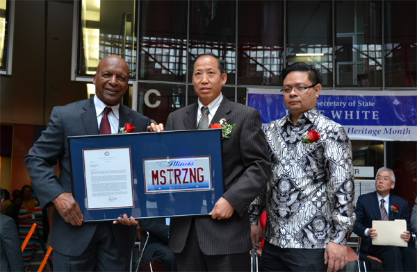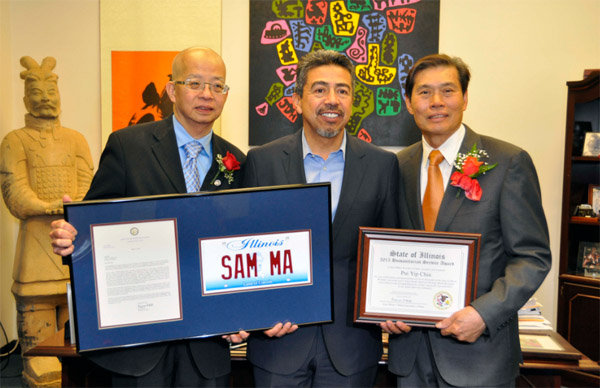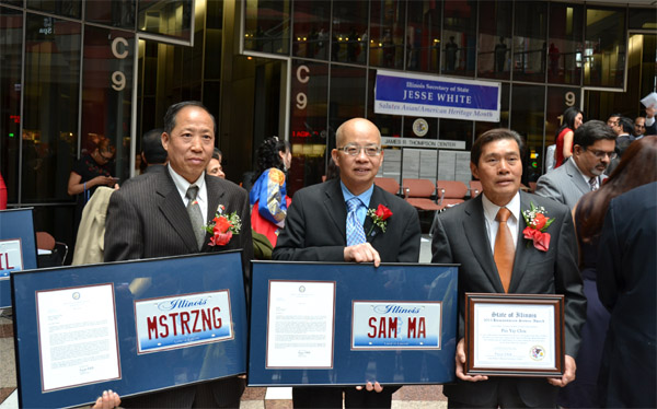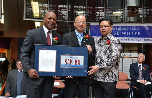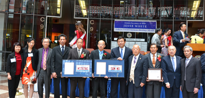 芝加哥侨学网报道】伊州州务卿杰西怀特(Jesse White)欢庆亚裔月活动,5月12日在芝加哥市中心州府大楼隆重举行。杰西怀特盛赞亚裔社区多元文化与蓬勃活力,并向杰出亚裔社区人士颁奖。芝加哥华裔社区杰出人物马森柱、张宏超荣获“杰出亚裔领袖奖”,赵培业荣获“杰出亚裔社区人士奖”。