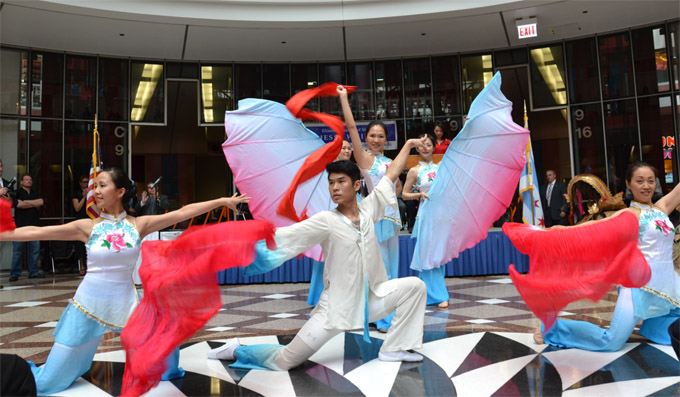 阳光舞蹈团表演,让州务卿亚裔月庆祝活动挂起中国风