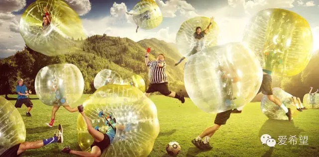 泡泡足球(bubble soccer)出生在丹麦,凭借胖萌胖萌的长相深深的吸引了万千少年少女,参加者需要把自己装进泡泡里,整场比赛每个人都会体验到high翻全场的欢乐和”不服!打我呀打我呀~~“的挑战书。争霸武林的过程当然还有必不可少的: 背着泡泡负重跑,呼吸困难,四脚朝天和被从天而降的幸福“撞了一下腰”的头等大奖等等。。。
