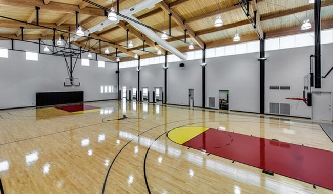 迈克尔·乔丹这所位于芝加哥郊区的豪宅拥有9个卧室、17个浴室以及多个能配得上豪宅称号的设施,其中包括一个循环水系统的游泳池、雪茄室、健身房,当然还有一个标准尺寸的篮球场。