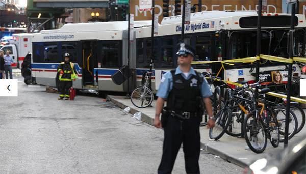 芝加哥侨学网编译】6月2日下午6时左右,正值下班人流、车流高峰期,芝加哥市中心(Michigan Ave & Lake St.)发生严重交通事故,一辆CTA巴士冲上人行道,造成一死九伤。