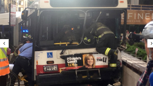 肇事车辆为148路巴士,当时沿着Lake St东向行驶,但不知道何故冲上人行道。CTA新闻发言人Brian Steele 确认,巴士冲上人行道时,撞到至少一名行人、四辆汽车。据目击者称,事故发生时听到轰然巨响,人们的尖叫。有目击者看到行人被撞飞,有目击者则看到巴士车头下面有人被拖行。