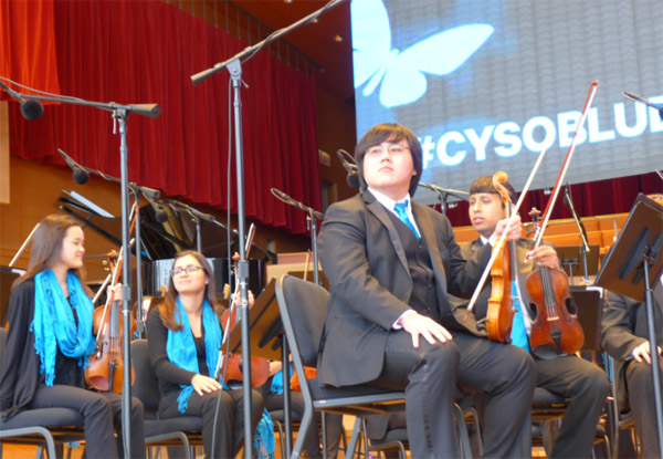 CYSO还特别邀请到著名的蓝人乐团( Blue Man Group)同场演出。蓝人乐团以一贯诙谐、风趣又天才横溢的演出,与青少年交响乐团的演奏,配合的天衣无缝、浑然天成;让民众不但沉迷在优雅的音符中、也被蓝人乐团独特的幽默的演出逗的乐不可支,笑声掌声在芝加哥的穹苍下历久不散。