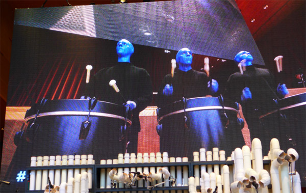 下半场首先由蓝人乐团上场,民众都涌向前台,希望将偶像看得更清楚。蓝人乐团的三位艺人,诙谐逗趣、似真似假的演绎方式,观众都十分受落,频频给予热烈的掌声和口哨声。