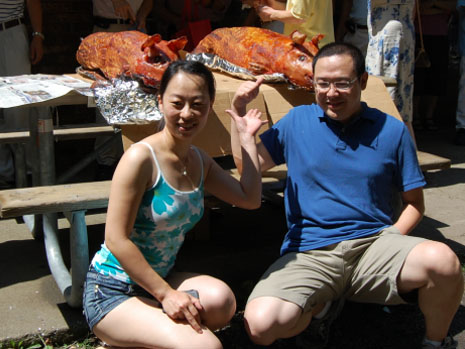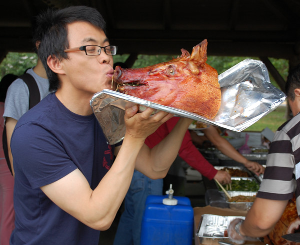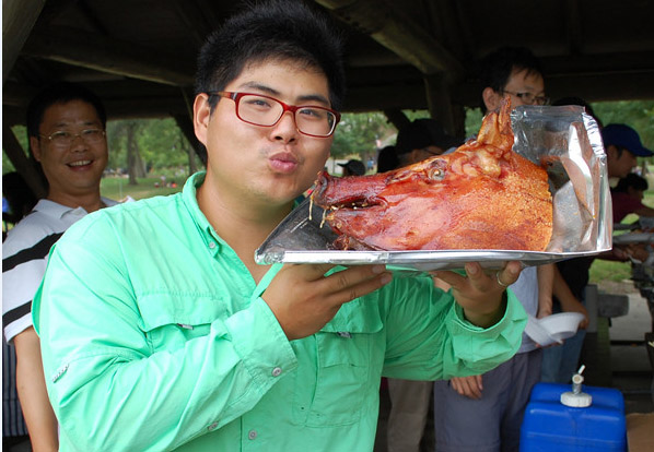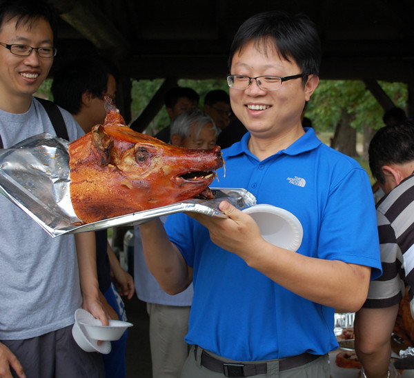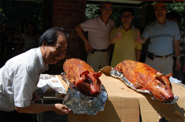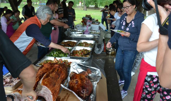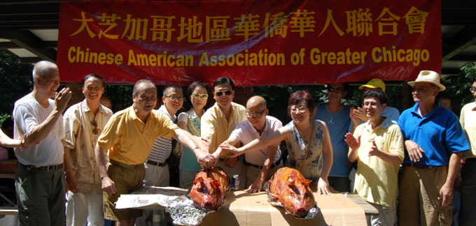 在芝加哥众多华人社团的野餐联谊活动上,切烤猪已是一道经典必备仪式,由社团领袖、各方嘉宾一起,为大家分享夏日的欢乐。