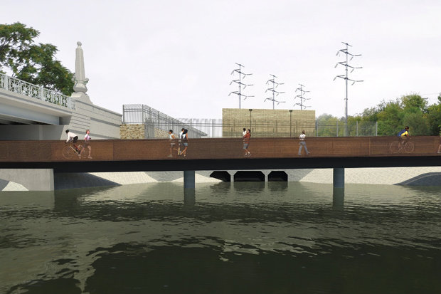 )。该休闲道,将供居民骑车、跑步、散步。该工程还包括:在爱迪生街跨河桥位置修建桥下通道,在加利福尼亚公园处,修建跨河桥,将位于芝加哥河东岸“凌波休闲小道”与对岸的公园连接起来。