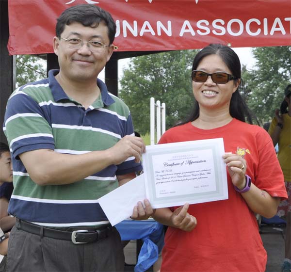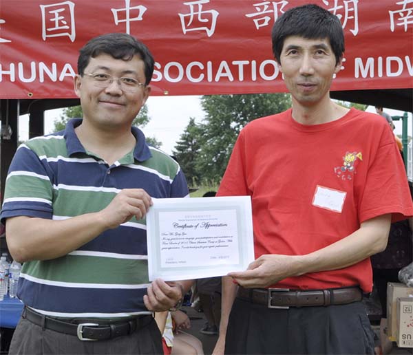 王柏青强调指出,湖南同乡会将继续加强与芝加哥总领馆、大芝加哥地区各兄弟社团继续保持密切联系与合作,更好地为全体老乡及华人华侨服务。最后王会长还感谢了湖南同乡会的所有元老,理事会,中美夏令领队以及每次都提供表演的飞鹰功夫学院表示了诚挚的感谢。