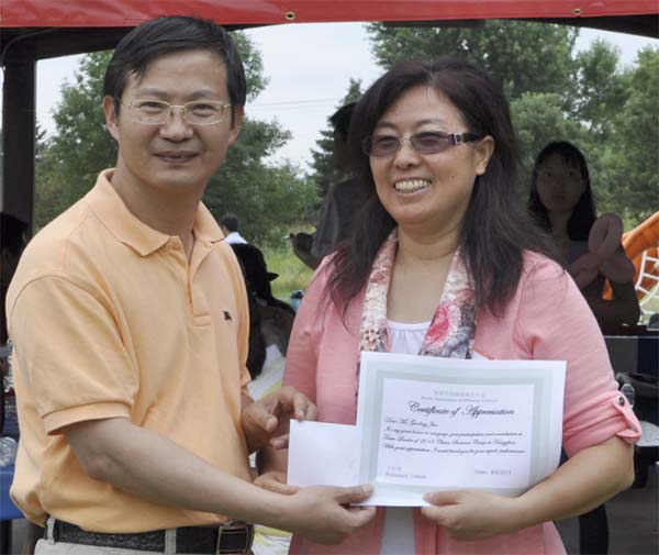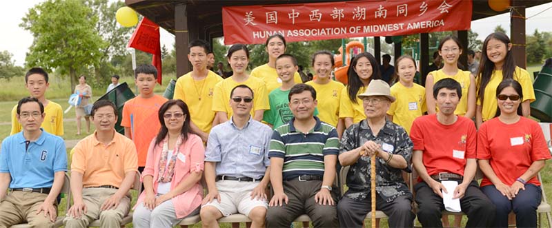 当天的聚会由美中湖南同乡会理事会成员盛小玲主持,湖南同乡会会长王柏青,首先代表湖南同乡会暨湖南工商会全体理事,热烈欢迎老乡们、嘉宾们及各界友人的到来。王会长表示,夏日野餐会每年都是一个十分有生气有活力的活动, 为新老朋友相聚提供了一个绝佳的场所,而这一切都离不开全体同乡会成员的帮助和支持。本次野餐会为了纪念抗战胜利70周年, 同乡会特地邀请到了当年的抗战英雄刘汉屏老先生与大家欢聚一堂。除了刘老先生,中国驻芝加哥总领馆王永副总领事,岑建德领事,希林西北中文学校校长石晓红等各界嘉宾,出席了当日的活动。