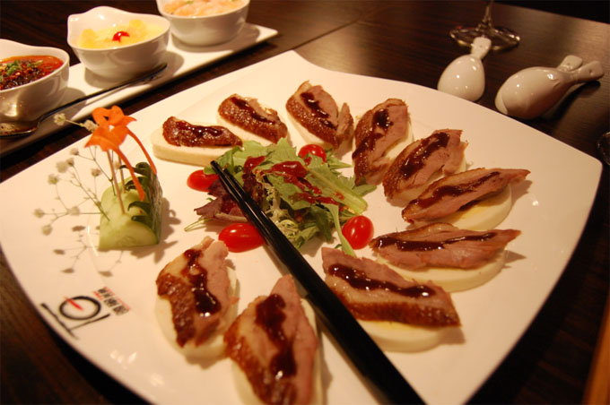 这道菜叫什么菊花樟茶鸭吧,还配雕花的。