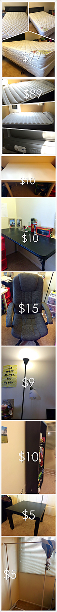 床:full size床头+床架+mattress&box 原价$300购入,$99出