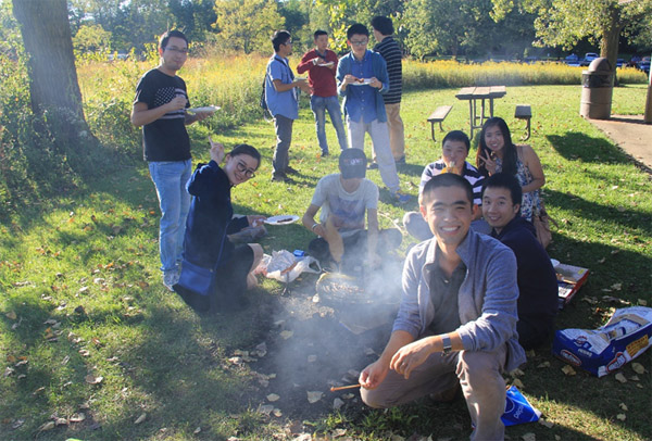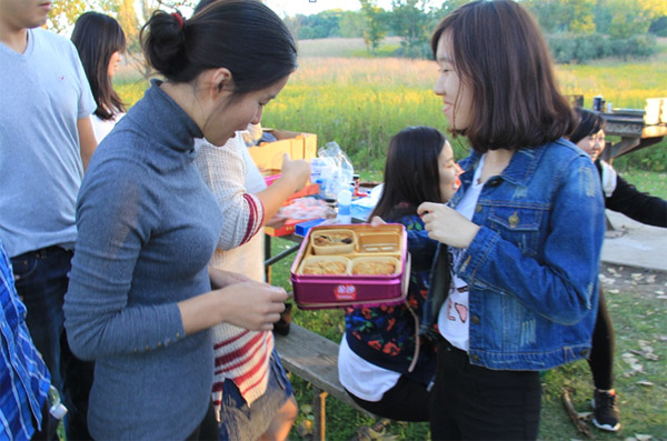 活动的组织者们表示,很多刚来NIU的同学对美国环境还不是很熟悉,希望新同学们能互相加强交流,从老生们那里了解学业、生活方面的经验。当天的烧烤的活动以中秋为主题,中式月饼和美式野餐烧烤让同学们汇集在一起,可谓中西合璧。