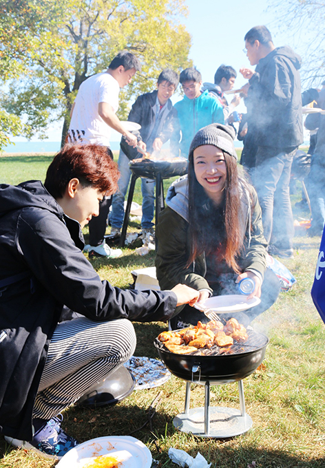 活动当天,广阔的密西根湖畔阳光灿烂,绿草如茵,冬天虽然尚未来到,但湖畔秋风萧瑟,寒意十足。三校学生会的同学们升起炭火,炊烟缭绕,张罗野餐,热火朝天。活动现场十分热闹欢快,处处充满欢声笑语,同学们还有各界嘉宾享受着湖畔草地上的美食、美景、游戏。当日,到场嘉宾不仅仅有三所主办学校的学生,还有来自UIC, Columbia College 和芝加哥大学的同学们,甚至印第安纳州的同学都纷纷来参加,共赴一年一度的芝加哥高校联谊烧烤。