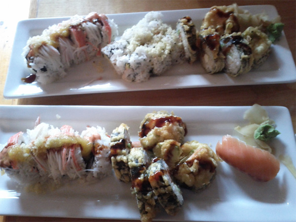 去Taylor 街那边的Rosebud吃烦了,前两天发现附近一个寿司店ichiban Sushi Cafe,那儿的lunch special 真不错,12刀左右吃得很爽。