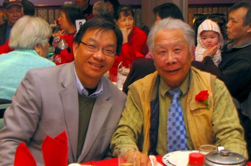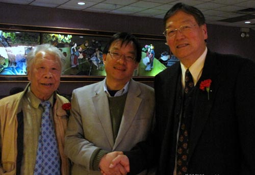 芝加哥和统会新当选会长吴灏(左)与全美和统会名誉会长伍健生(右)