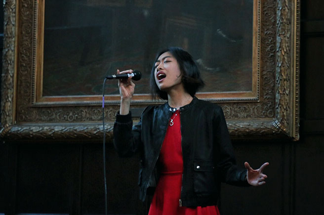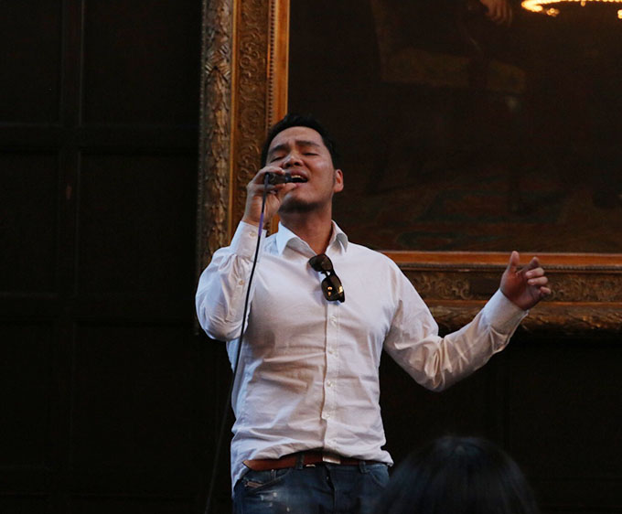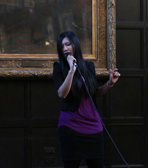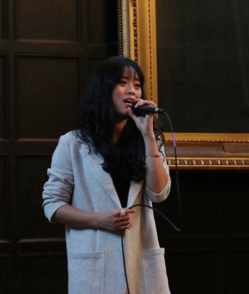 一号选手博雅组合为大家带来了一首悠扬婉转的《Make you feel my love》,给大家带来了与原唱席琳迪翁不一样的风格;二号选手徐夏天的一首《慢慢》情真意切感染了在场的所有听众;三号刘晓雨用活泼朝气的热情将大家带入了她《第一天》的青春世界里;四号芝大博士生第二年的李璐通过了一曲古韵古风的《月牙湾》将人们对于博士生传统的刻板印象彻底颠覆;六号许子杨Linda的《没离开过》女生男嗓,技惊四座;七号吴骥自弹自唱《我的未来不是梦》充满正能量;而九号邓明铭的一曲《少女的祈祷》温婉动人。