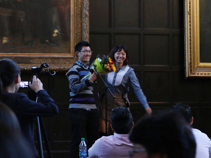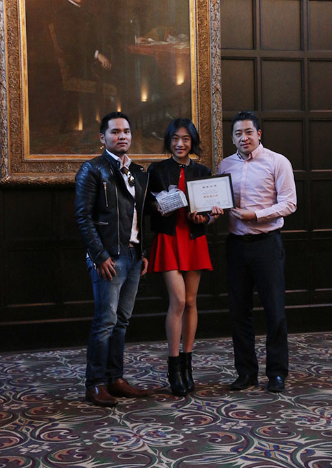 本场大赛第一名张亦吉接受陈潇评委颁奖