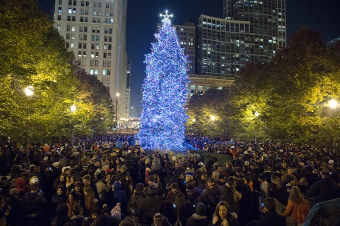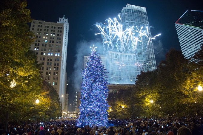 » 圣诞树在千禧公园被点亮了