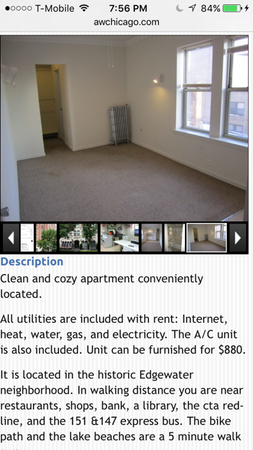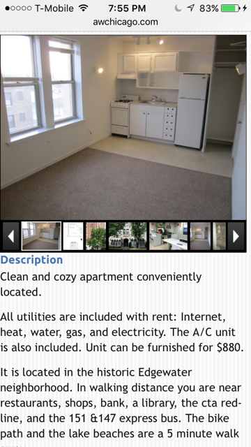 [p=20, null, left]环境:四周环境优美,步行10分钟即到Kathy Osterman Beach和Torndale Avenue Park, 可以再密歇根湖边欣赏美丽的日落,享受芝加哥最美的风景之一。公寓周边有各种快餐店和各国餐馆,LA Fitness健身房也在附近,周围各种超市都是15分钟步行之内可到达(Walgreens, Aldi, Mariano's, Jewel-Osco, Whole Foods),生活便利,非常安全。[/p]