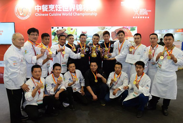 首届中餐烹饪世界锦标赛经过两天紧张的角逐,11月20日在北京国家会议中心圆满闭幕。大赛共有15支队伍参赛,评出金奖3个,银奖6个,铜奖6个。香港、云南、台湾三支队伍以出色的团队合作、国际标准、中餐呈现、西式装盘,以高分获得首届金奖,并分别获得冠军、亚军、季军;香港队主厨谢楠榕、云南队主厨贺云中两主厨获得最佳表现奖。中国国家队、中国奥林匹克队、马来西亚队、美国队、澳门队、 山西队等6支队获得银奖 。意大利烈火队、尼泊尔队、浙江队、新加坡队、 菲律宾队、韩国队获得铜奖 。