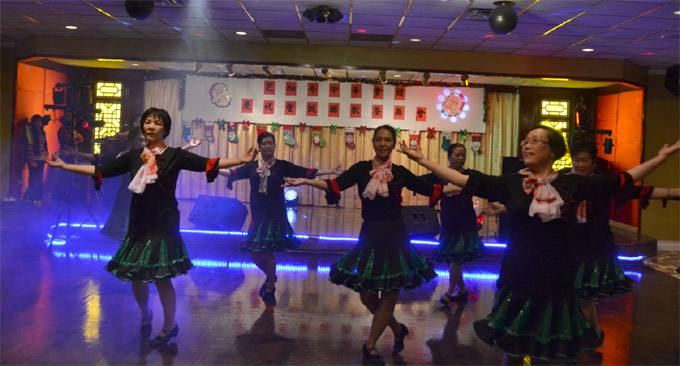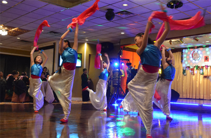 中华会馆儿童舞蹈班的小朋友们,以《春天在哪里》、《圣诞歌》两场欢快的舞蹈,为联欢晚宴开场。芝加哥台湾同乡联谊会带来的流行歌曲表演唱《甜蜜蜜》,由项邦珍、王庆敏、陈莎莎倾情登台,中华会馆舞蹈班形体舞《唱天上一首歌》、民族舞《请喝一杯下马酒》,众多文艺表演令人应接不暇,现场掌声阵阵。当天由Vicki Chou, Peter Litos 带来的社交舞表演,动感的节奏,热情奔放的舞姿,更是火爆全场,全场来宾掌声如雷。