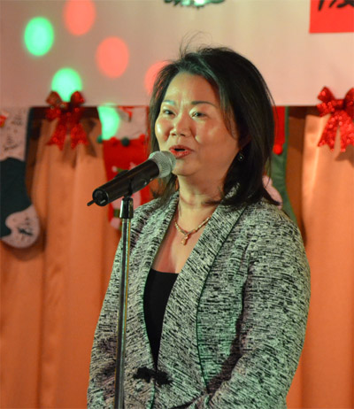 中华会馆董事长黄于纹则指出,今年是中华会馆第二次举办大型圣诞联欢餐舞会活动,看到这么多嘉宾友人齐聚一堂,她倍感开心。黄于纹表示,圣诞节和新年是所有人在忙碌一年后与家人、朋友欢聚一堂的大好日子,她希望中华会馆主办的圣诞联欢会带来节日的欢乐与祝福。黄于纹还特别感谢财星赌场酒店(Ameristar Casino)对本次晚会赞助众多奖品。
