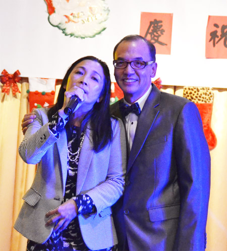 晚会间歇,还有财星赌场公司代表上台抽奖,惊喜连连。何震寰处长、王伟赞主任当天还与刘国新主席、黄于纹董事长,以及中华会馆历届主席一起登台,为大家演唱《玲儿响叮当》、《圣诞快乐》等多首节日歌曲,全场一派喜气洋洋。晚宴最后是各界来宾同乐的舞会,刘国新主席携夫人为大家开舞,各界“舞”林高手纷纷登台,共同欢度佳节良宵。