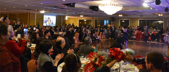 报道】芝城中华会馆12月19日在南华埠富丽华酒楼隆重举办2015圣诞联欢会,芝加哥30多个侨团代表及各界来宾近600人,在圣诞佳节即将到来之际欢聚一堂,大家品味美食,欣赏歌舞,还有众多的惊喜抽奖,让大家度过一个难忘的夜晚。