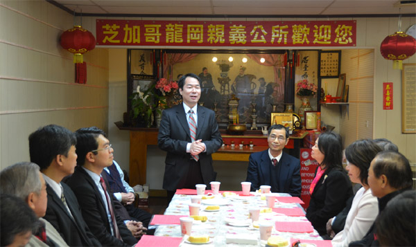 元旦新年当天,何處長一行已拜訪了芝加哥華僑婦女會、至孝篤親公所、洪門致公堂、洪門粵韻曲藝社、林西河堂、昭倫公所、華裔退伍軍人會、中國國民黨美中支部。1月5日,何处长一行还将拜访:华人咨询服务处、乐宜居,芝城华商会,芝英大厦,凤伦公所,美洲华裔博物馆,福建同乡会,东南亚中心,芝城华人互助会,芝加哥潮州同乡会,美中华人敬老会,芝城协胜公会。(图文: