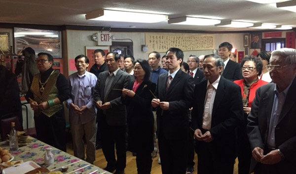 在黄氏宗亲会,何处长一行入乡随俗,与黄氏宗亲们一起,聆听全美黄氏宗亲会元老黄景雄宣读黄氏先祖遗训,并与芝城黄氏宗亲会主席黄立仁、黄国铭等黄氏宗亲职员,向先祖牌位上香敬酒,气氛庄严隆重。何处长表示,中国古代礼仪文化,在黄氏宗亲祭祖典礼中得到完美体现,这种传统文化的保存,实属难能可贵。