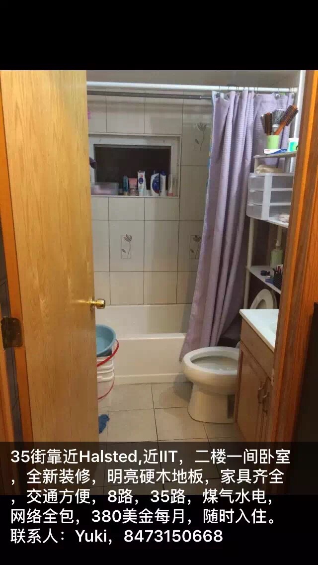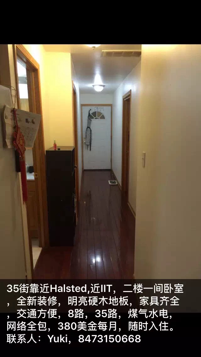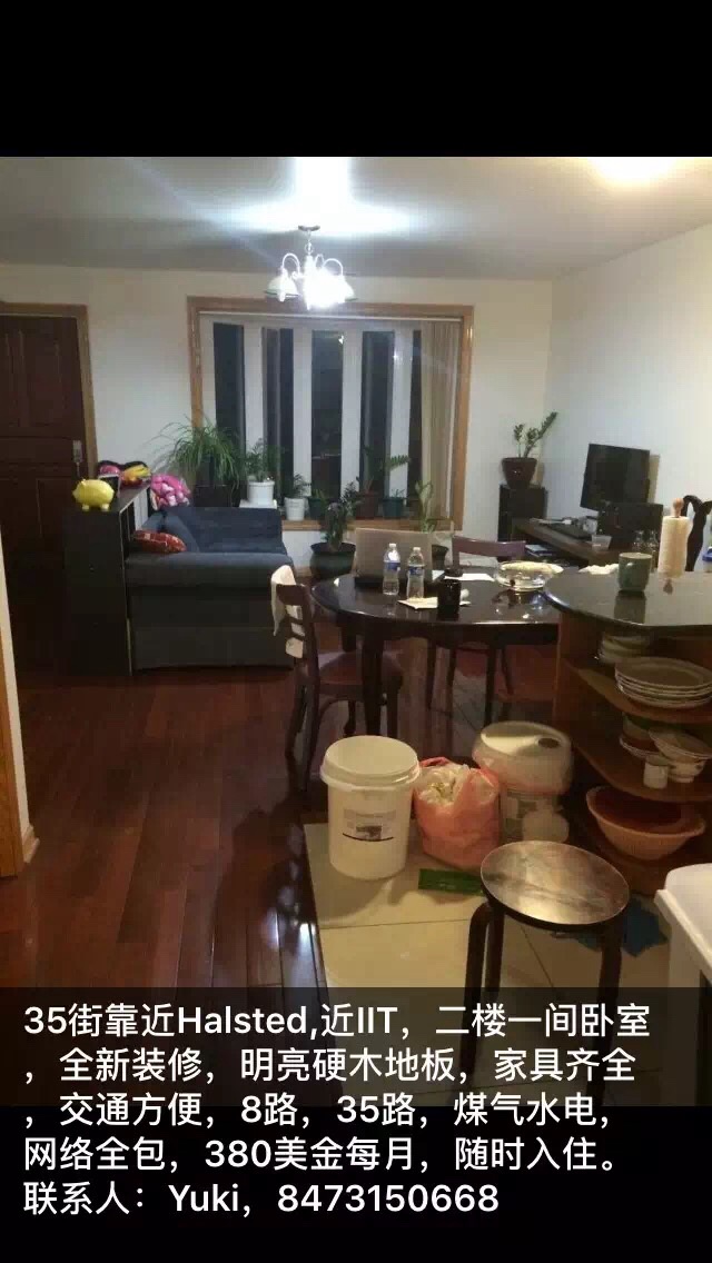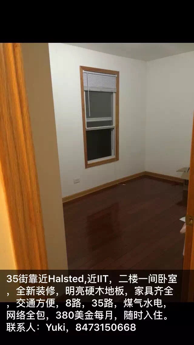35 街和halsted 。水电气网全包,家具齐全。全新装修。$380一月。随时入住。电话 [url=tel