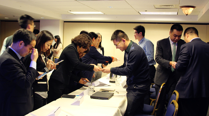 (芝加哥侨学网记者乐小白报道) 随着中国经济的飞速发展,银行业国际化的趋势在不断加深,跨越大洋之间的交流就变得越来越重要。在这一背景下,1月21日晚,中美银行高端对话 - CFAA银行发展圆桌会议在Club Quarters Hotel举行。