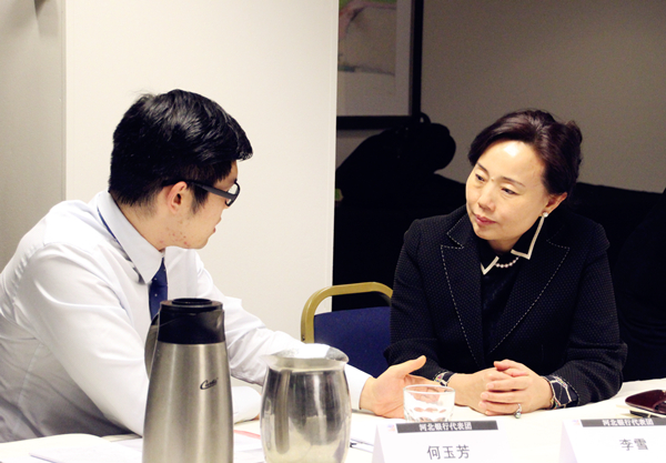 李副行长还介绍了河北银行招贤纳才的愿望,对于毕业生来说,城市银行的优势在于平台更好,虽然入行以后一人多职、辛苦,但是长期发展的眼光来看,这种体系下培养出来的人才业务水平好、适应能力更强。圆桌会议结束后,在场的大学生们都迟迟不愿离去,向与会嘉宾毛遂自荐,还有一些公司的代表也积极参与讨论,表达了希望和国内银行合作的意向。