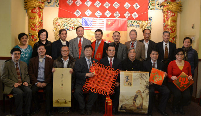 新春团拜首站,为大芝加哥华人华侨联合会(华联会)。华联会董事长胡晓军主持欢迎仪式,主席汪兴代表华联会欢迎热烈欢迎总领事一行的到来,并特别感谢总领事馆对2月12日大芝加哥猴年春晚筹备工作的大力支持。